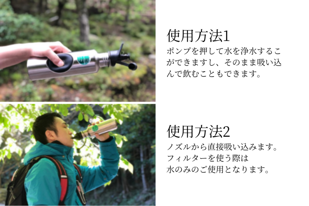 また、フィルターは取り外しが可能です。水筒としてもお使い頂けます。