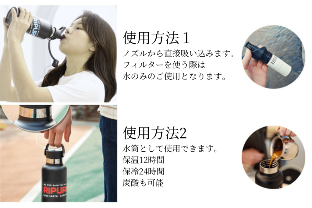 RIPURIは、浄水機能を備えた水筒です。