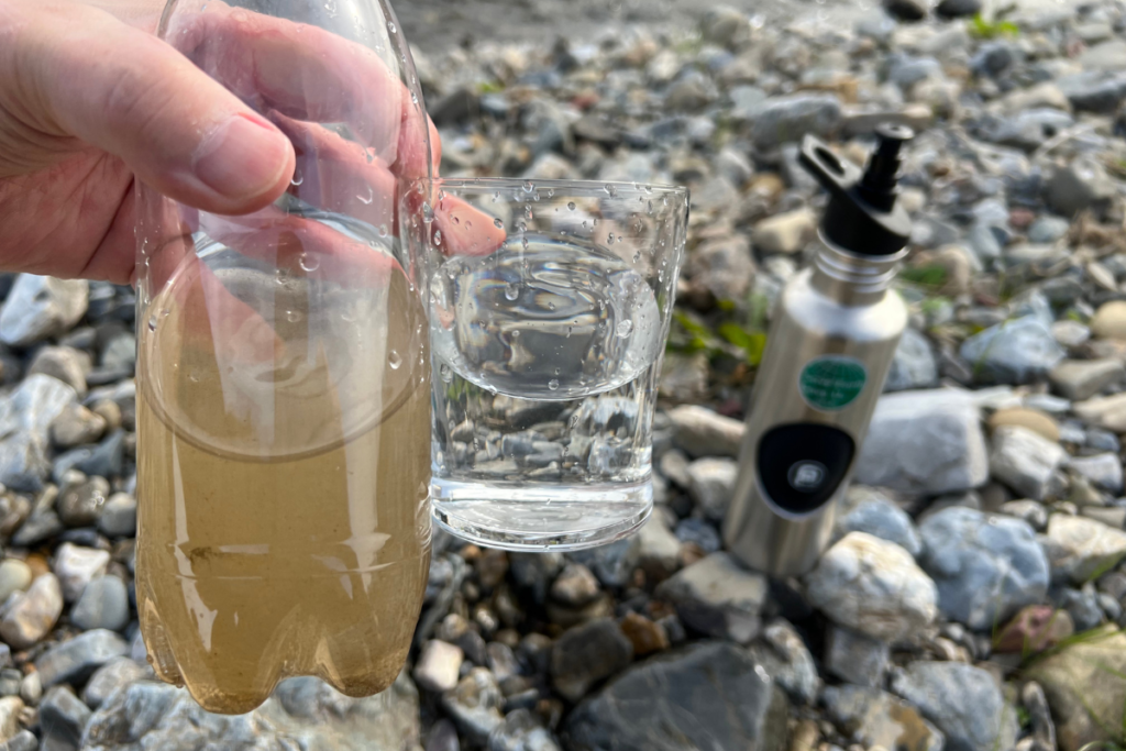 汚れた砂や菌が混ざった川の水もこの通りです。※PROフィルターを使用