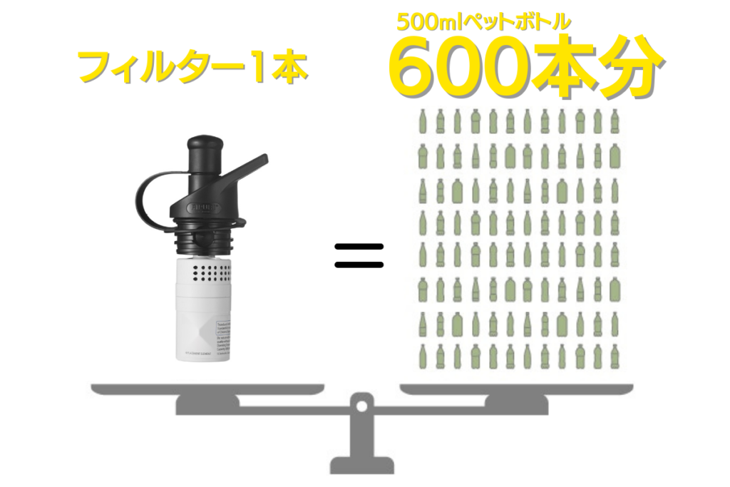 クラシックフィルターは1本でペットボトル600本分(300リットル)も美味しい水を作り出すことができます。
