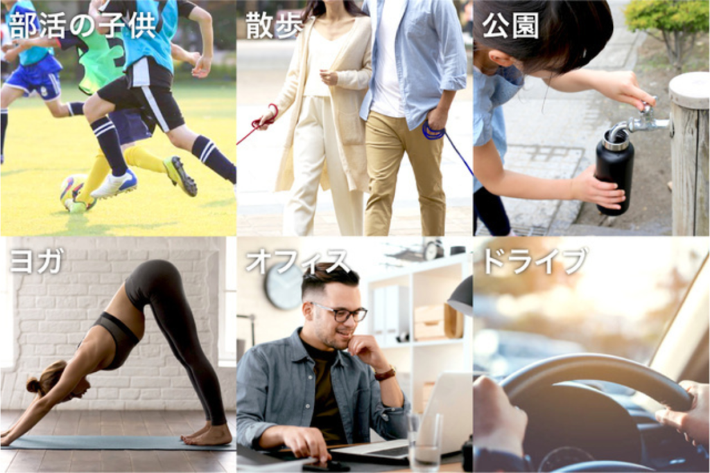 RIPURIを持っていれば、いつでもどこにいても、最適量の水分補給ができます。
